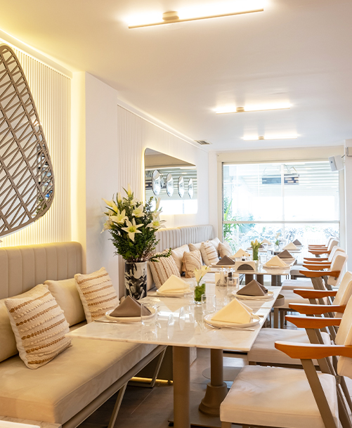 Alliance Kordon Restaurant’ta ortamın büyüsü, yemeğinizi unutulmaz kılar. Ferah ve şık tasarımımız, geniş cam pencerelerden süzülen eşsiz Kordon manzarasıyla birleşerek, denizle iç içe bir atmosfer sunar. Burada, doğanın huzurunu ve zarafetini her an hissedebilirsiniz.